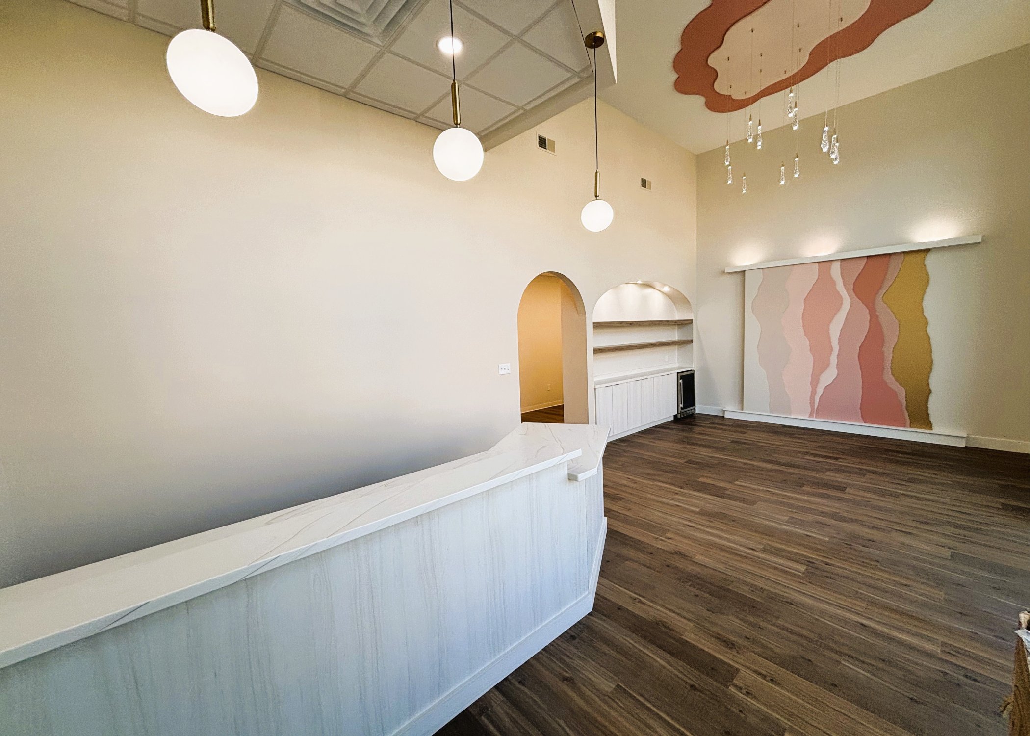 The finished product you see above was first thought of by our client when the time came to move operations to a new space.  Our design team went to work bringing vision to fruition through preliminary design and renderings.  After meeting with our client and taking their feedback into account, final drawings were created for State Submission, then ultimately construction.  This 2,153 square foot interior buildout was completed, utilizing of our Self-Performed Construction Services team.